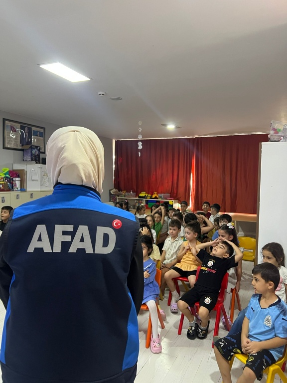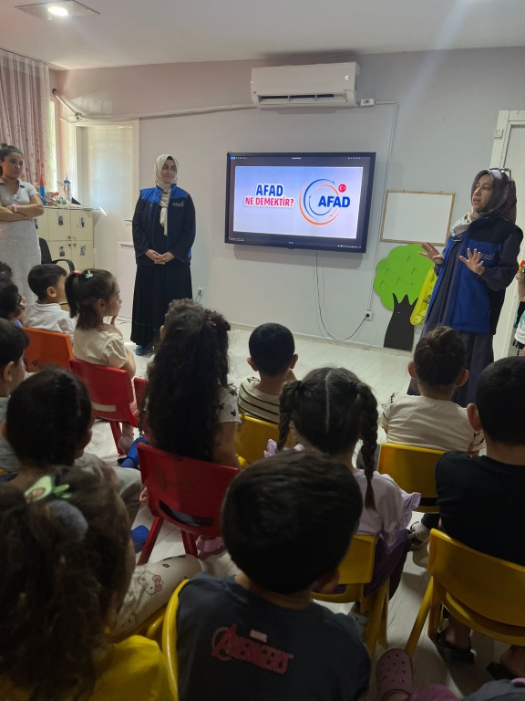 AFAD ekibi bizlerle buluşarak çocuklarımıza afet ve acil durumlarda neler yapmaları gerektiğini anlattı.